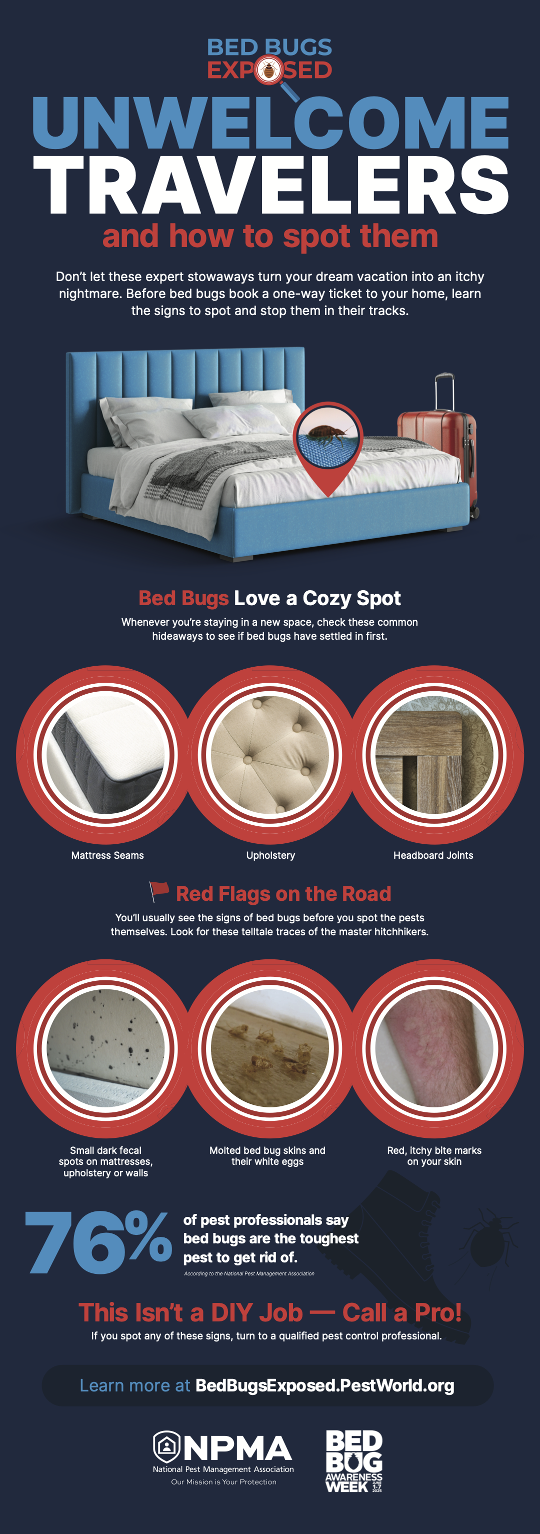 “Until you've seen a bed bug infestation up close, it's hard to understand just how sneaky these pests really are," shared Dr. Jim Fredericks, Senior Vice President of Public Affairs for NPMA. "‘Bed Bugs Exposed’ gives homeowners an unprecedented look at how these pests operate, coupled with the knowledge to spot the signs early and avoid bringing these hitchhikers home."